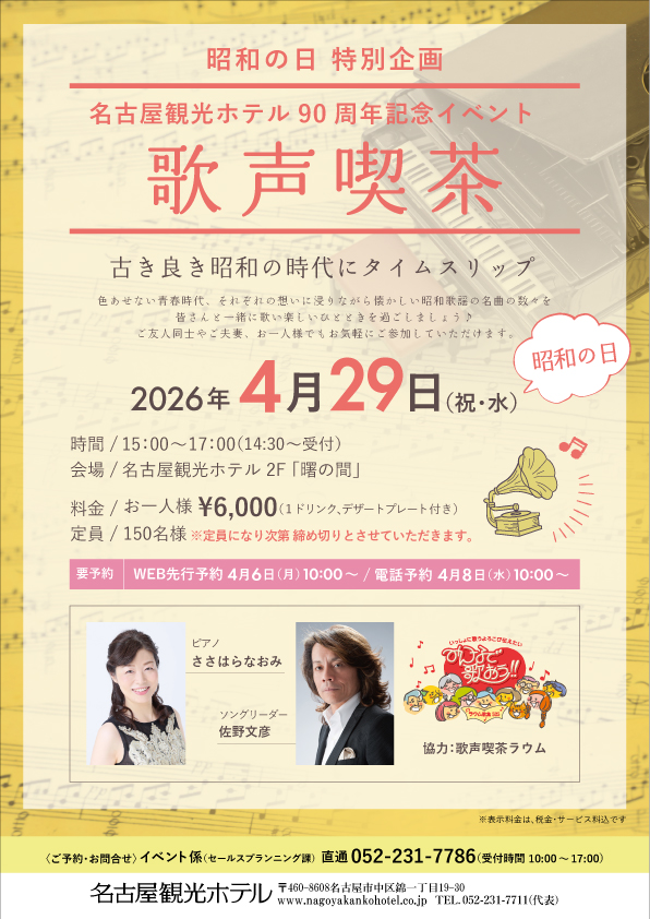 名古屋観光ホテル90周年記念イベント「歌声喫茶」