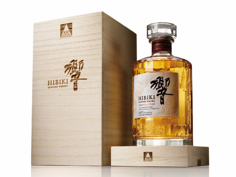 酒齢17年以上の個性豊かな原酒に、30年を超える山崎ミズナラ樽モルト、円熟の知多グレーンを丁寧に重ねた「響」100周年ブレンド。